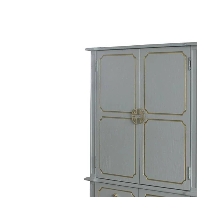 Always keep your dining room uncluttered, inviting and prepared for all of the guests. This stunning server comes with a wooden frame accented by elaborate carving. It has two cabinet with doors next to each other, providing two spacious compartments that you can hide your dinnerware set behind doors. There are also a rectangle top and bottom shelf for display area and open space. Organize what you need with the Marchesa Server before a holiday feast.