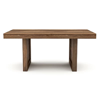From a rugged lodge to an urban loft, this charming, rustic wood dining table is an eye-catching addition. Perfect for a cabin-inspired interior, the table is a clean, simplistic design in a rich, natural finish over solid wood. The thick plank top features sharp edges and wide supports underneath for optimal stability. Create a place to enjoy a delicious meal as you catch up with friends and family.