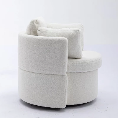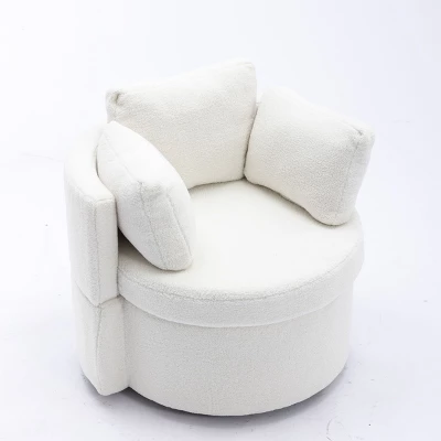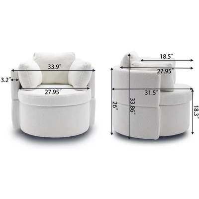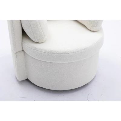 April 33.9″ Seat Wide Teddy Round Swivel Backrest Chair is a versatile swivel chair with built-in storage. It features a soft and skin-friendly teddy fabric, providing a cozy and comfortable seating experience. The cushion is filled with a thick sponge that maintains its shape and resists collapsing over time.This swivel chair comes with three throw pillows, each filled with plush doll cotton for added comfort and style. The lower end of the cushion is equipped with a thick and sturdy partition splint, which offers ample storage space when removed.With its sturdy base, this accent chair allows for smooth 360-degree rotation. You can effortlessly swivel and change sitting positions without having to move the base, providing you with a seamless and enjoyable sitting experience. The combination of style, comfort, and storage makes this swivel chair with storage a practical and stylish addition to any living space.April 33.9″ Seat Wide Teddy Round Swivel Backrest Chair is a versatile swivel chair with built-in storage. It features a soft and skin-friendly teddy fabric, providing a cozy and comfortable seating experience. The cushion is filled with a thick sponge that maintains its shape and resists collapsing over time.This swivel chair comes with three throw pillows, each filled with plush doll cotton for added comfort and style. The lower end of the cushion is equipped with a thick and sturdy partition splint, which offers ample storage space when removed.With its sturdy base, this accent chair allows for smooth 360-degree rotation. You can effortlessly swivel and change sitting positions without having to move the base, providing you with a seamless and enjoyable sitting experience. The combination of style, comfort, and storage makes this swivel chair with storage a practical and stylish addition to any living space.