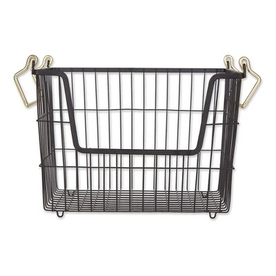 Reorganize your home with style using the DII Design Imports Medium-Sized Wire Mesh Stackable Utility Storage Bin in Black and Gold.This rectangular metal wire mesh storage basket is the perfect solution for bringing style and organization to any room in your home. Designed with versatility in mind, you can store anything from toys, books, and games to food, linens, and crafting supplies for a multifunctional home storage system that brings order and peace to your home. Perfect for storing potatoes, onions, canned goods, pantry items, flour, sugar, or any other dry goods while keeping them accessible and visible, you’ll love the organization this bin provides.Whether you’re bringing a sense of order to your kitchen pantry or tackling the playroom, living rooms, office, or cluttered closets, this bin is the ideal way to keep things easy to access while elevating your style and utilizing your space efficiently. The gold swinging handles add a touch of elegance and make transportation from room to room simple and comfortable.Upgrade your storage system with the Medium-Sized Wire Mesh Stackable Utility Storage Bin in Black and Gold from DII Design Imports.