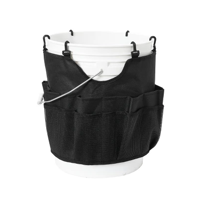 - Black bucket caddy with 6 hooks