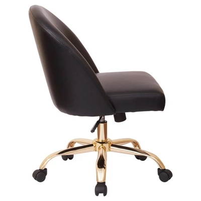 Seating with an edge. Get the classic look of an accent chair combined with the function of an office chair with this modern task chair. Faux leather brings an edgy, yet sophisticated vibe to the home office, making it a place that exudes style. The heavy duty gold finish base with dual wheel carpet casters allows for a chic look and easy accessibility. Upgrade your home office with the Layton office chair.
