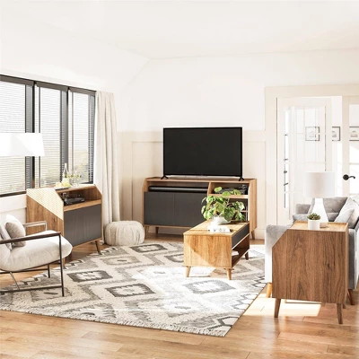 Tactile and tantalizing, the Magnolia Collection from The Novogratz transports beloved mid-century ribbed detailing back into the spotlight where it belongs. Made from engineered wood laminated with a walnut finish, and black ribbed cabinet door, the Magnolia End Table provides a place for both nostalgia and functionality to resonate. The End Table provides a top surface for a lamp or decor, a lower storage area for remotes and reading materials, and closed storage for everything else to ensure your living room stays clean and tidy. The End Table ships to your door in one flat box and requires assembly upon opening. Two adults are recommended to assemble. Once assembled, the End Table measures to be 28” H x 19.88” W x 22” D.