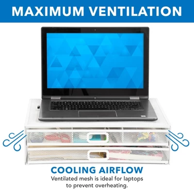 MI-7365 Mesh Computer Monitor Stand Riser allows you to instantly benefit from improved ergonomics, space-saving storage, and sleek, lightweight, and sturdy metal design. Hold your computer monitor and all your office products.
