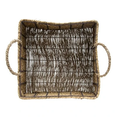 Unique in shape, a handwoven basket crafted from natural seagrass by artisans using traditional techniques. The grasses are intricately woven around a metal structure to create a unique tapered square shape and finished with sturdy handles to allow you to lift when full. This is a great basket for stylish organization as well as a decorative accent to infuse some natural boho elements to your space.