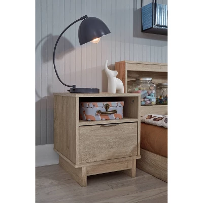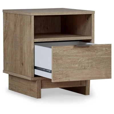 Bringing big style to your living space, this nightstand is a smart choice for those with an eye for contemporary design. Its clean-lined profile and understated refinements create a simple silhouette that works in so many settings. A flush-mount drawer and open cubby keep this piece on the cutting edge of cool. Signature Design by Ashley is a registered trademark of Ashley Furniture Industries, Inc..