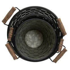 Set Of 3 Galvanized Metal & Wood Baskets – Foreside Home & Garden