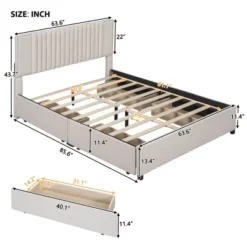 Queen/Full Size Upholstered Platform Bed With Classic Headboard And 4 Drawers-ModernLuxe