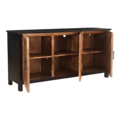 Rolle Rustic 3 Door Credenza/Sideboard Natural Wood/Black – Treasure Trove