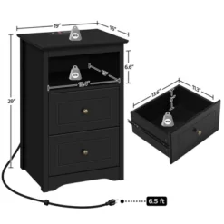 Yaheetech 2 Drawer Bedside Table Sofa Side Table With Charging Station
