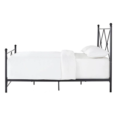 Perfect for a classically styled bedroom, the Inspire Q Nelley Double X Black Metal Queen-size Bed is a positive addition to your home. The black metal frame provides ensured stability and simple, traditional style, while a double x design makes up the head and footboard, giving the bed a bold reputation. Ornate detailing within the double x design adds to the overall beauty of this bed, making it an easy addition to almost any bedroom theme.