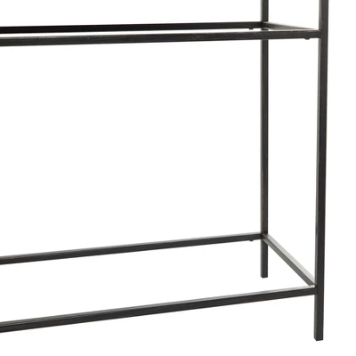 Bring a finishing touch to your home with an inviting appeal with this console table. A sturdy and long lasting construction for a years of enjoyment. Place this rustic-themed console table in your hallway or entryway and bring style and convenience to your indoor home space. This item ships in 1 carton. Suitable for indoor use only. This item ships fully assembled in one piece. Maximum weight limit is 100 lbs. This is a single black colored entryway table. Rustic style.