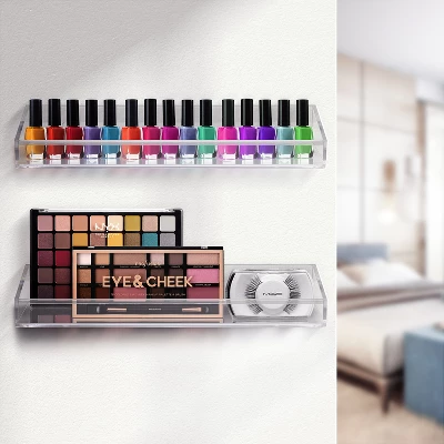 Curate an effortless wall display with the Sorbus Acrylic Floating Shelves. Whether for. Bathroom supplies or decorative objects, this ledge set is a simple solution for any room. It features a rectangular silhouette with a modern clear aesthetic. The minimal look fits most décor and can be installed virtually anywhere! Hang alone or pair with other styles from the Sorbus clear storage collection. Versatile for any space. These shelves add decorative style to any area of your home. Use them to hold kid’s books in the playroom, keep ingredients in the kitchen, or display framed awards in your home office. For a spa like retreat, use as a bathroom saver shelf to display small toiletries, skincare, nail polishes and essential oils. The possibilities are endless! Modern space-saving design. Wall mount display with easy assembly. Can be hung as a single ledge or with multiples for an elevated wall statement. Coordinates with all decor schemes. Made of durable 5mm thick PS/acrylic. Stronger and safer than glass. Measures approximately 15” L x 4” W x 2.25” H.