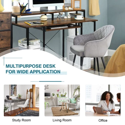 Tangkula Computer Desk Home Office Workstation W/Book Shelves For Working Studying Gaming, Rustic Brown
