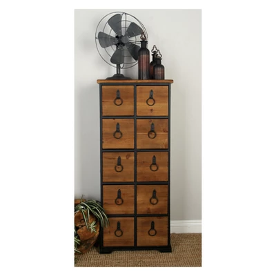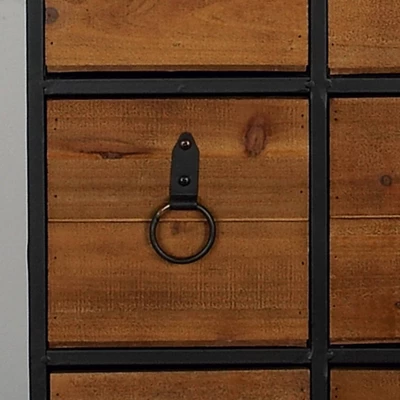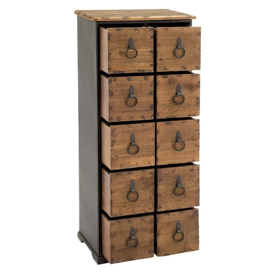 - Natural and black wood chest made from Chinese fir wood and MDF with iron O-ring handles, 10 rectangular drawers