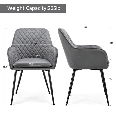 • 【Modern Armchairs】Featuring simple color, plain appearance and strong structure, this set of 2 dining chairs will widely match your furniture and home style. The diamond pattern in the interior of the backrest and the fine stitches make these accent dining chairs charming but not garish.
